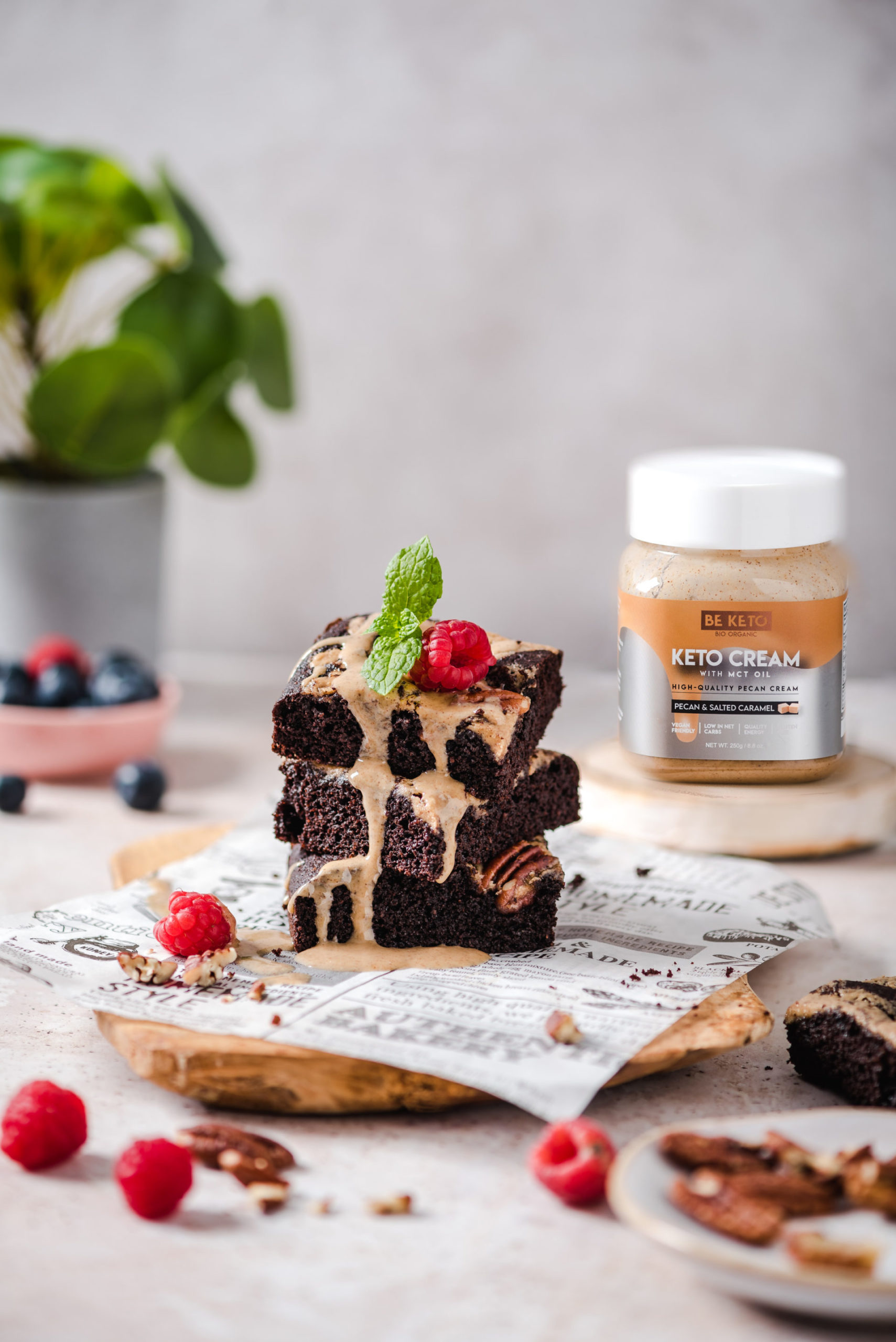 Puszyste, mocno czekoladowe keto brownie? Tak, to możliwe! Keto brownie z karmelem to deser idealny nie tylko dla osób stosujących dietę keto, ponieważ smakuje jak klasyczne ciasto uwielbiane przez wszystkich miłośników czekolady! Spróbuj naszej propozycji na białkowo-tłuszczowe brownie z dodatkiem keto kremu pekan & solony karmel i ciesz się intensywną, satysfakcjonującą słodyczą!