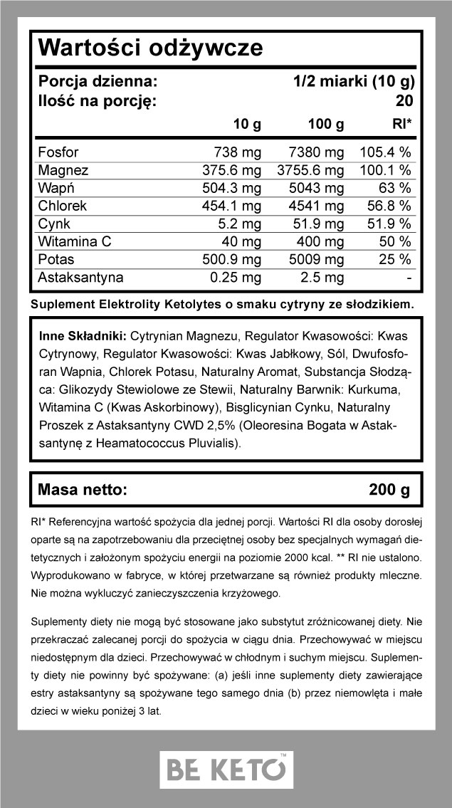 Ketolytes stosuje się w celu uzupełniania poziomu elektrolitów w organizmie, co jest szczególnie ważne w diecie ketogenicznej oraz podczas intensywnych treningów fizycznych. Elektrolity, takie jak sód, potas, magnez i wapń, pełnią kluczową rolę w utrzymaniu równowagi płynów w organizmie, wspierają prawidłową funkcję mięśni oraz układu nerwowego, a także pomagają w regulowaniu ciśnienia krwi. Kiedy organizm traci większe ilości wody i elektrolitów (np. po odstawieniu cukru w diecie) uzupełnianie ich jest niezbędne, aby zapobiec odwodnieniu, skurczom mięśniowym i innym niedoborom. Ketolytes pomaga również w utrzymaniu energii, koncentracji oraz stabilności poziomu cukru we krwi, wspierając ogólną wydolność i zdrowie podczas stosowania diety ketogenicznej lub aktywności fizycznej.