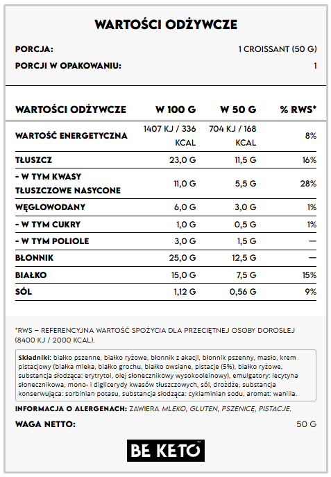 Tylko 6g węglowodanów na 100g – jeden z najniższych wyników wśród croissantów z nadzieniem.