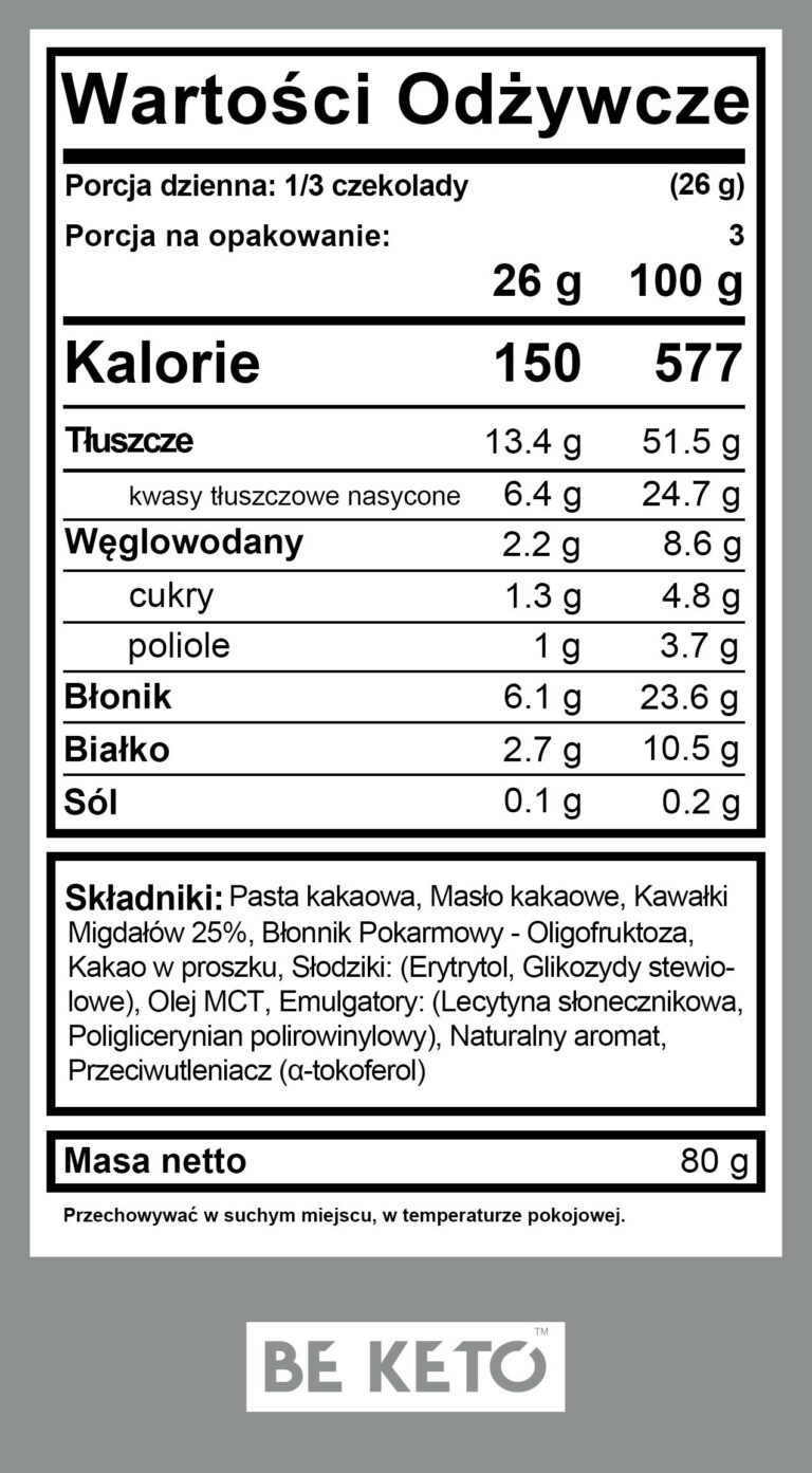 Bez dodatku cukru i z najniższą liczbą węglowodanów netto na rynku, BeKeto™ Keto Chocolate + MCT Oil pomaga utrzymać zdrowy poziom cukru we krwi. Więc rozkoszuj się, ale nie przesadzaj - to uzależnia.
